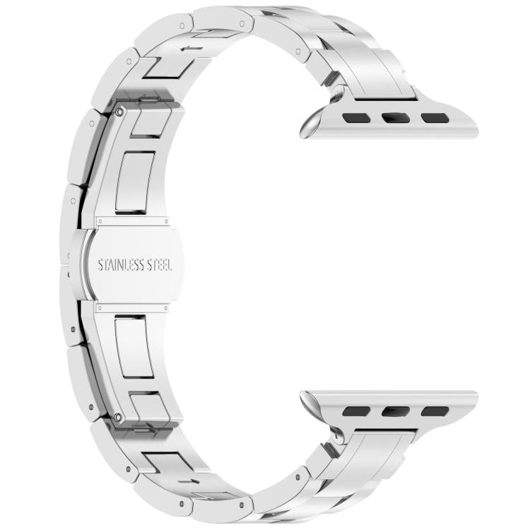 Correa de aleación de titanio con hebilla de mariposa de tres cuentas para Apple Watch de 42 mm / 41 mm / 40 mm / 38 mm (plateada)