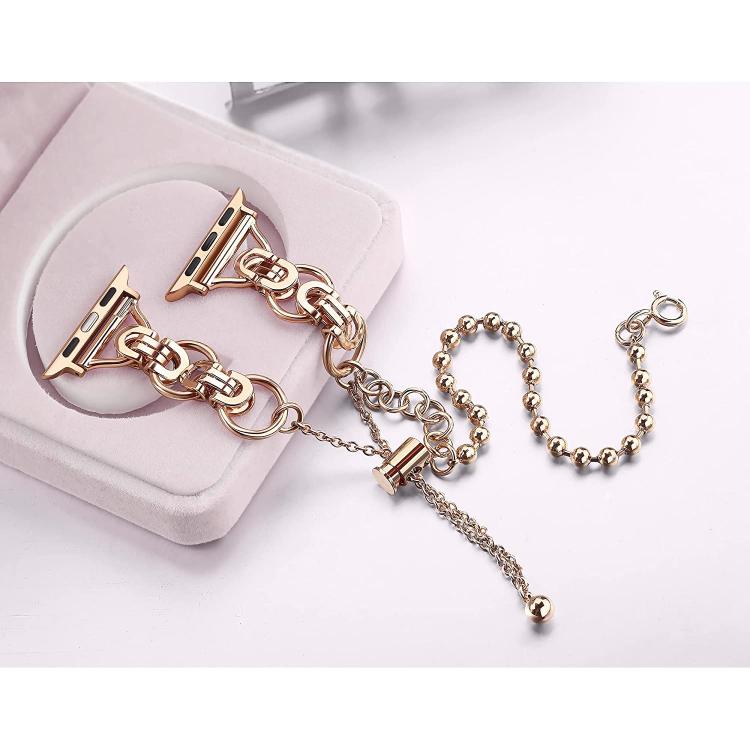 Correa de aleación de zinc con doble círculo y cuentas para Apple Watch de 42 mm, 41 mm, 40 mm y 38 mm (oro rosa)