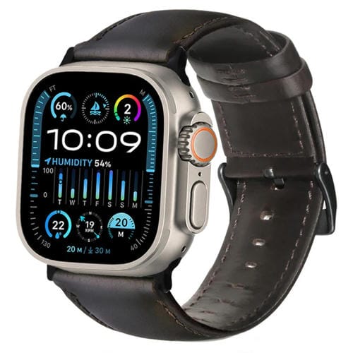 Correa de Cuero Genuino con Cera de Aceite para Apple Watch Ultra 49mm (Marrón Oscuro)
