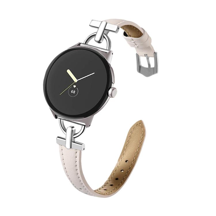 Correa de cuero metálica en forma de D de 45 mm para Google Pixel Watch 4/3 (rosa claro)