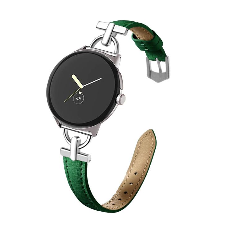 Correa de cuero metálica en forma de D de 45 mm para Google Pixel Watch 4/3 (verde)