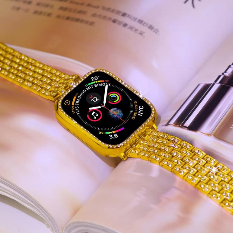 Correa de metal con diamantes brillantes y estuche para Apple Watch Series 38 mm xDfind (dorado)