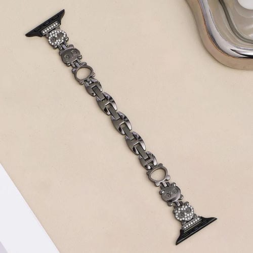 Correa de metal con diamantes en forma de panda rojo xDfind para Apple Watch de 42, 44, 45, 46 y 49 mm (negra)