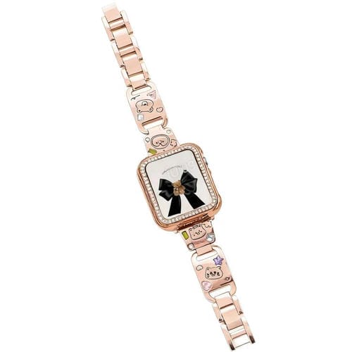 Correa de metal con diamantes Happy Zoo para Apple Watch de 42, 44, 45, 46 y 49 mm (oro rosa)