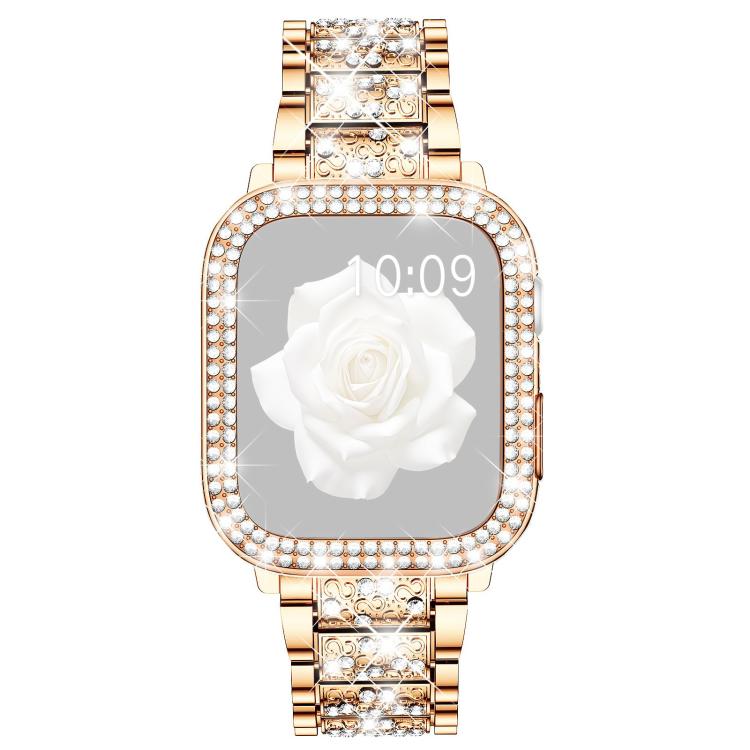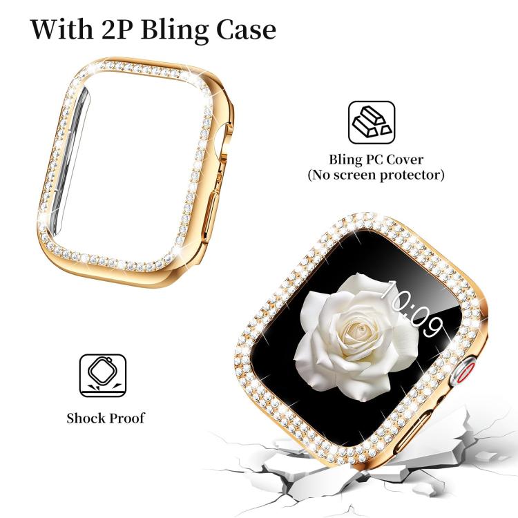 Correa de metal con diamantes y estuche para Apple Watch Series 44 mm xDfind (oro rosa)