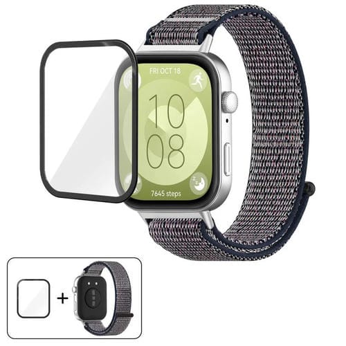 Correa de nailon con cierre de velcro y película curva 3D para Huawei Watch Fit 3 (azul medianoche)