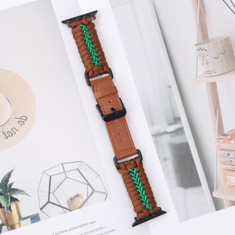 Correa de nailon Paracord con doble hebilla de cuero para Apple Watch de 42 mm, 41 mm, 40 mm y 38 mm (marrón)