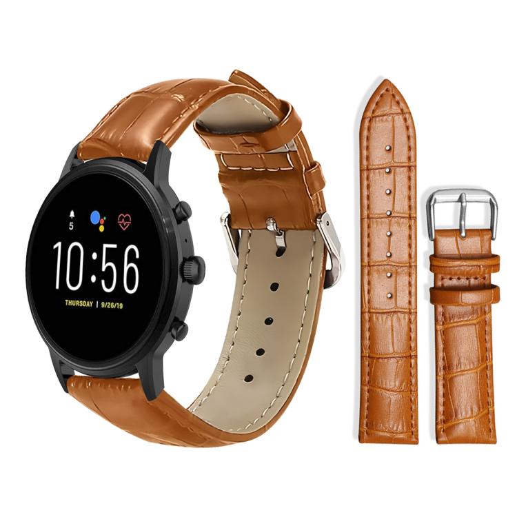 Correa de reloj de cuero con hebilla de pasador y textura de bambú de 22 mm para Fossil Gen 5 Carlyle/Julianna/Garrett xDfind (marrón claro)