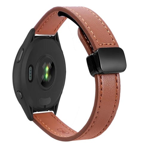 Correa de Reloj Cuero Microfibra 18mm con Hebilla Magnética para Garmin Forerunner 265S (Marrón Moca)