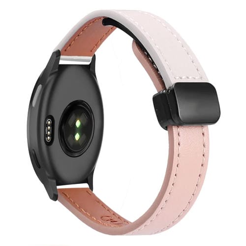 Correa de Reloj Cuero Microfibra 20mm con Hebilla Magnética para Garmin Active 5 (Rosa y Albaricoque)