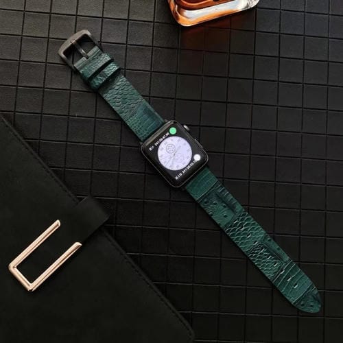 Correa de Reloj Cuero Genuino Cocodrilo y Avestruz para Apple Watch Ultra 49mm Series 8 7 45mm Se 2 6 5 4 3 2 1 42mm (Verde)