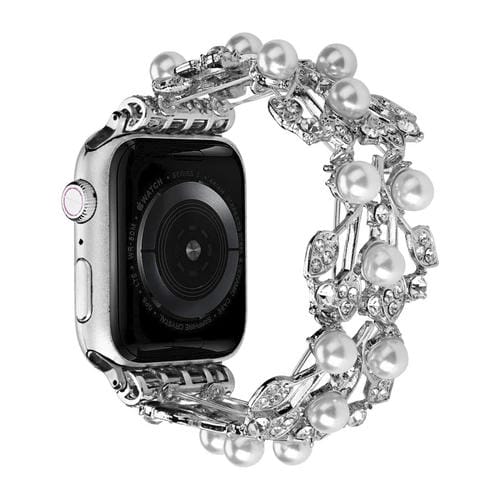 Correa de Reloj Metal con Cuentas Cuatro Hojas para Apple Watch 6 44mm (Plata)