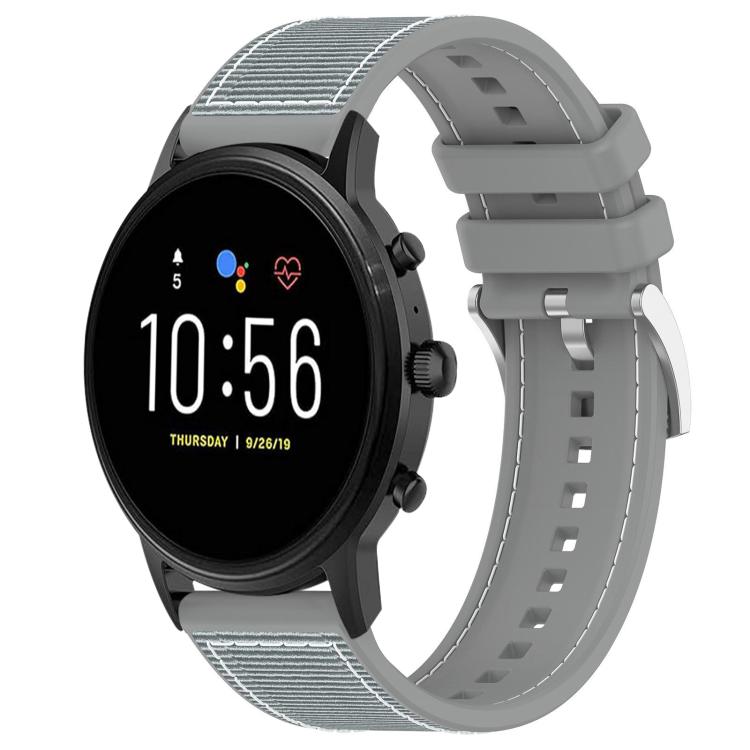 Correa de reloj híbrida de nailon trenzado de silicona de 22 mm para Fossil Gen 5 Carlyle/Julianna xDfind (gris)
