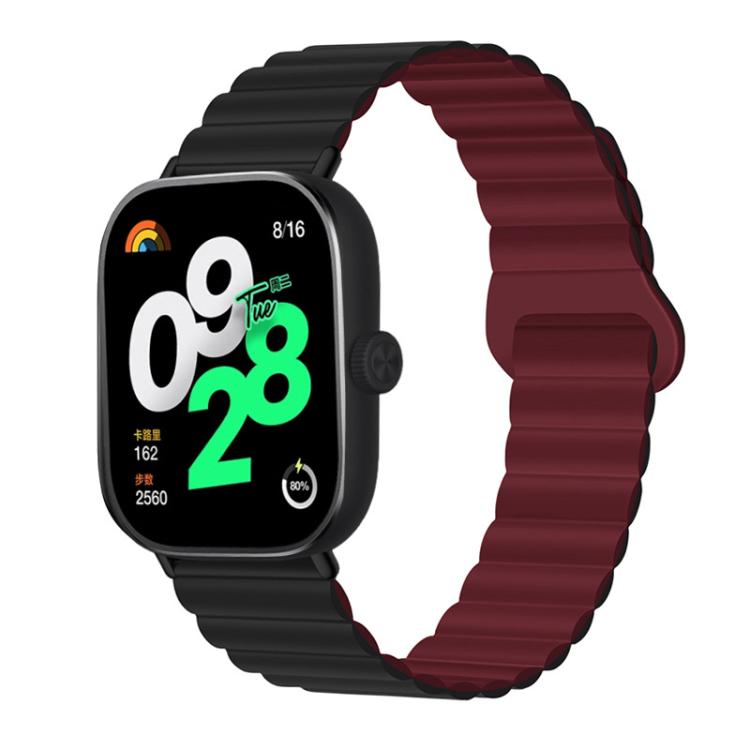 Correa de reloj magnética de silicona con hebilla invertida para VivoWatch GT / iQOO Watch GT (negro + rojo vino)