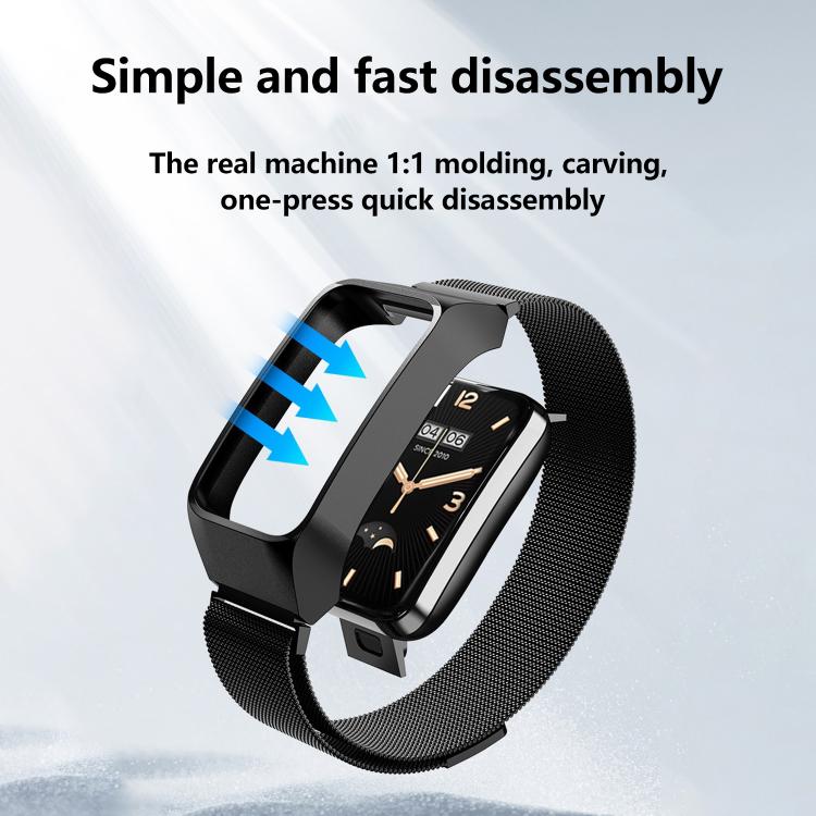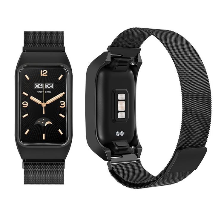 Correa de reloj magnética milanesa de metal con marco de acero inoxidable integrado para Xiaomi Mi Band 7 Pro (negro)