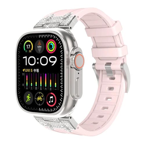 Correa de Silicona Apple Watch Ultra 2 49mm Diseño Cielo Estrellado Diamantes (Rosa)