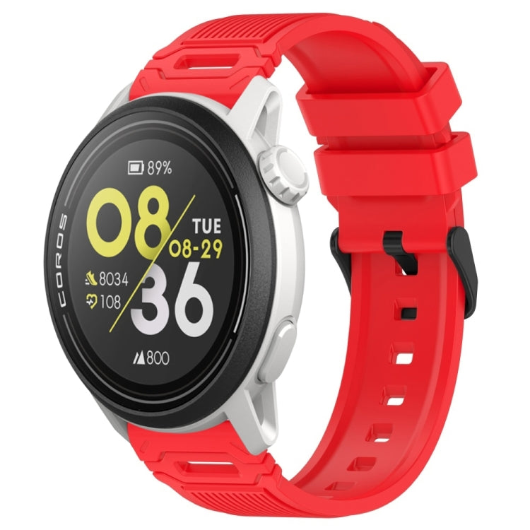 Correa de silicona con hebilla negra y patrón vertical para reloj COROS de 22 mm (roja)
