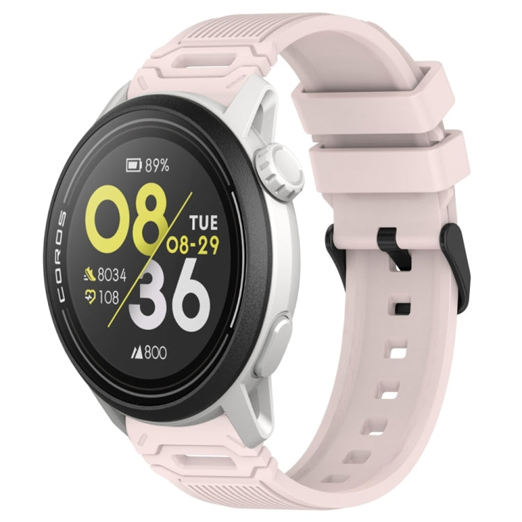 Correa de silicona con hebilla negra y patrón vertical para reloj COROS de 22 mm (rosa)
