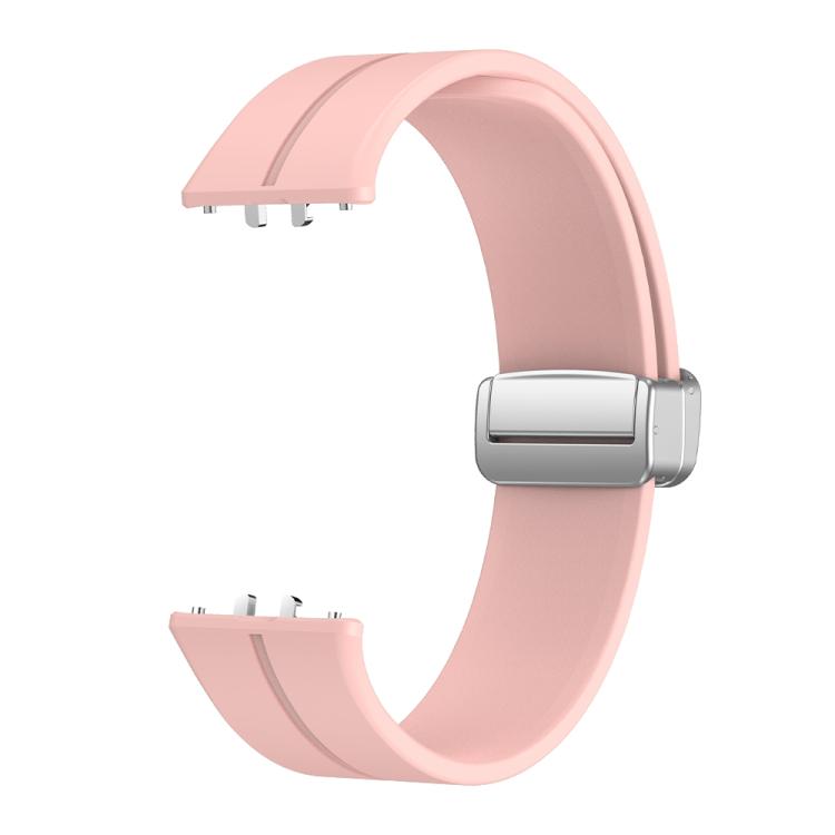 Correa de silicona con hebilla plateada y cierre magnético para Samsung Galaxy Fit 3 (rosa claro)