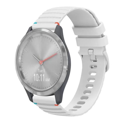 Correa de Silicona para Reloj Garmin Vivomove 3S 18mm con Puntadas y Puntos (Blanca)