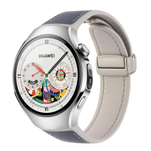 Correa de silicona híbrida de cuero con hebilla magnética para Huawei Watch 5 de 46 mm (azul napa con efecto estrella)
