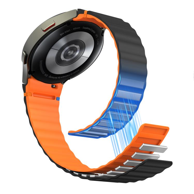 Correa de silicona magnética con costuras onduladas para Samsung Galaxy Watch 7/6/5/4 (negro y naranja)
