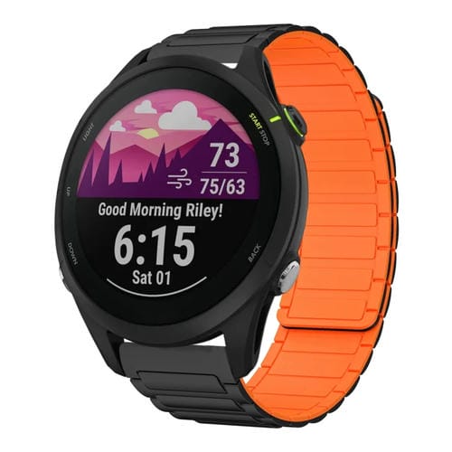 Correa de Silicona Magnética en Forma de I para Garmin Forerunner 255 Music 22mm (Negra y Naranja)