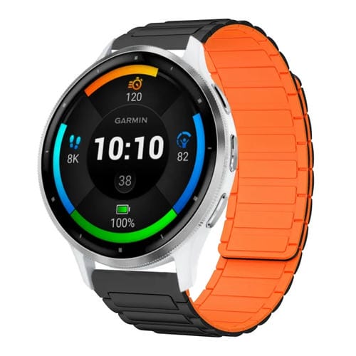 Correa de Silicona Magnética en Forma de I para Reloj Garmin Venu 3 22mm (Negra y Naranja)