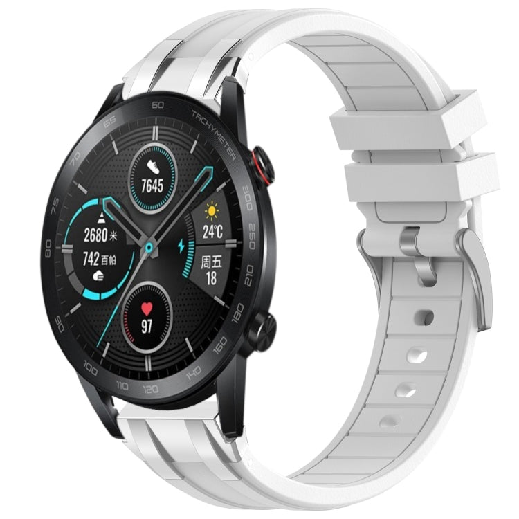 Honor Magic Watch 2 42mm 20mm Silicone Watch Band Strap with Quick Release Silver Buckle (White)