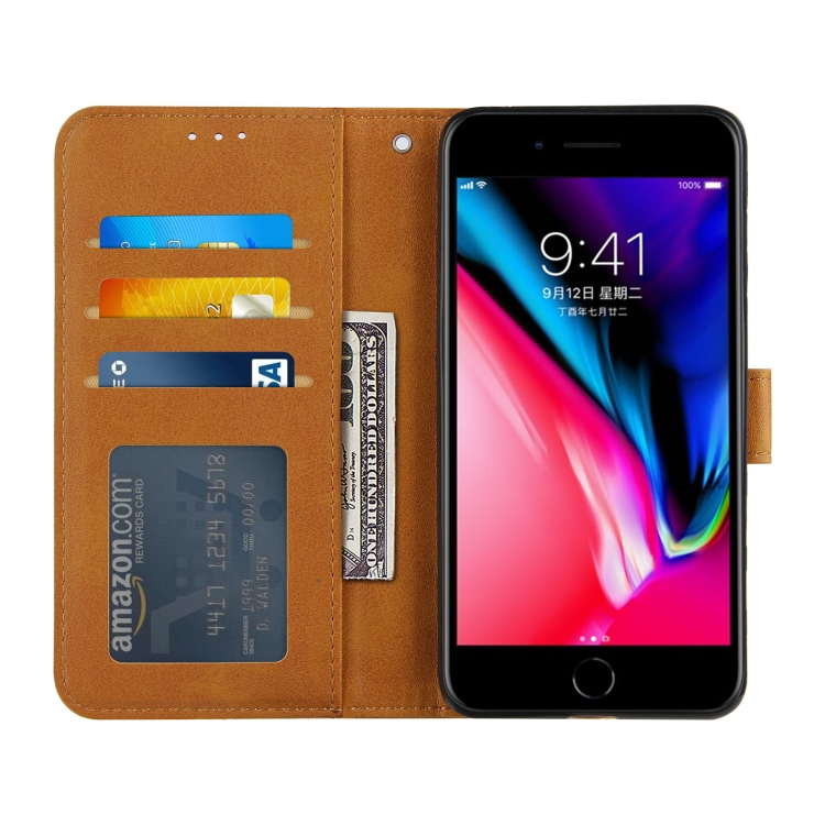 Funda de Cuero Horizontal con Soporte y Ranuras para Tarjetas para iPhone 6/7/8/SE 2020 (Amarillo)