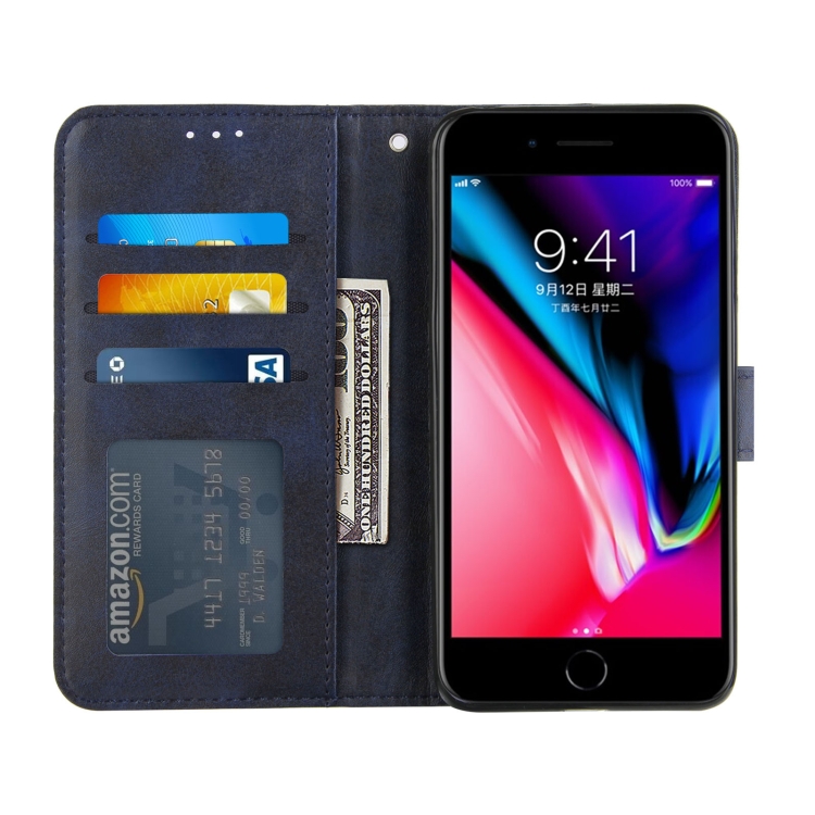 Funda Horizontal Flip con Hebilla para iPhone 6 Plus 7 Plus 8 Plus con Soporte Ranuras Tarjetas Billetera y Cordón (Azul)