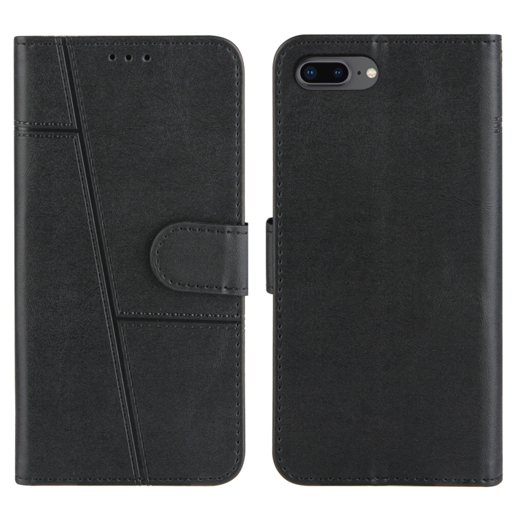 Funda Horizontal Flip con Hebilla para iPhone 6 Plus 7 Plus 8 Plus con Soporte Tarjetero Billetera y Cordón (Negro)