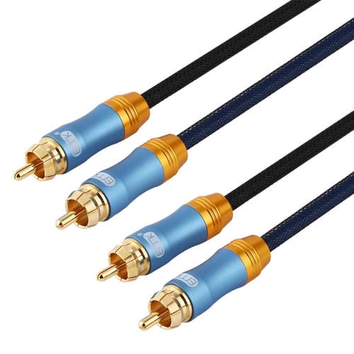 Cable de Audio Coaxial Emk 2 x RCA Macho a 2 x RCA Macho Chapado en Oro Trenzado de Nailon 2 m (Azul Oscuro)