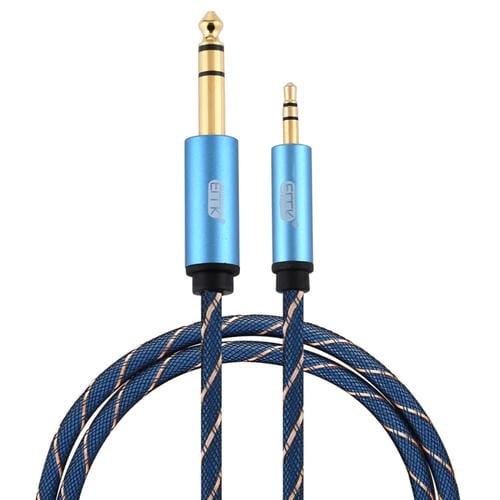 Cable Auxiliar Emk Conector Macho 3,5 mm a Macho 6,35 mm Chapado en Oro Trenzado de Nailon 1 m (Azul Oscuro)