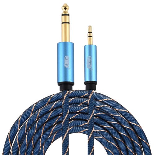 Cable Auxiliar Emk Conector Macho 3,5 Mm a Macho 6,35 Mm Chapado en Oro Trenzado de Nailon 5 M (Azul Oscuro)