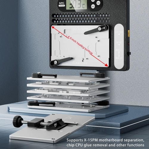 La estación de desoldar con Placa Base PCB y Pantalla LCD I2C modelo T18 es una Herramienta profesional diseñada para la Reparación y mantenimiento de Placas Base y Componentes electrónicos. Compatible con una amplia variedad de chips y Placas, esta estación permite realizar la separación y unión de Placas Base con precisión y seguridad. Su diseño modular magnético facilita el reemplazo de módulos según las necesidades del usuario, mientras que su Pantalla Digital LED proporciona un control exacto de la temperatura, que varía desde 180 hasta 245 grados Celsius. Fabricada en aluminio de aviación con procesamiento CNC, esta estación ofrece alta resistencia a la oxidación y a temperaturas elevadas, siendo adecuada para usuarios que reparan por cuenta propia y Técnicos especializados. El dispositivo incluye un módulo Universal con Enchufe para USA, asegurando compatibilidad eléctrica en dicha región.
