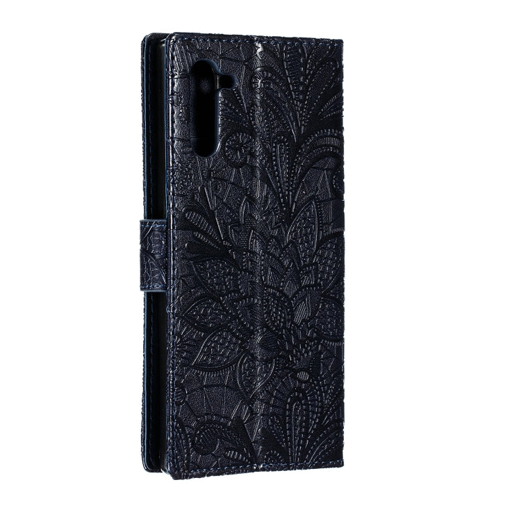 Estuche de Cuero Galaxy Note10 Tapa Horizontal con Soporte Ranuras Tarjetas Billetera Marco Fotos Cordón (Azul Oscuro)