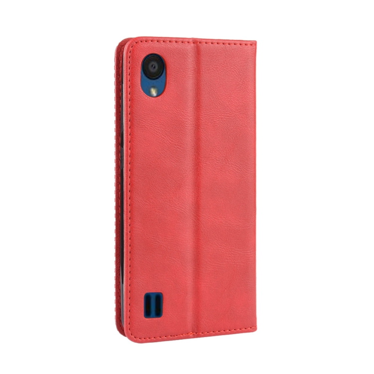 Estuche de Cuero ZTE Blade A5 (2019) Tapa Horizontal Textura Caballo Loco con Hebilla Magnética (Rojo)