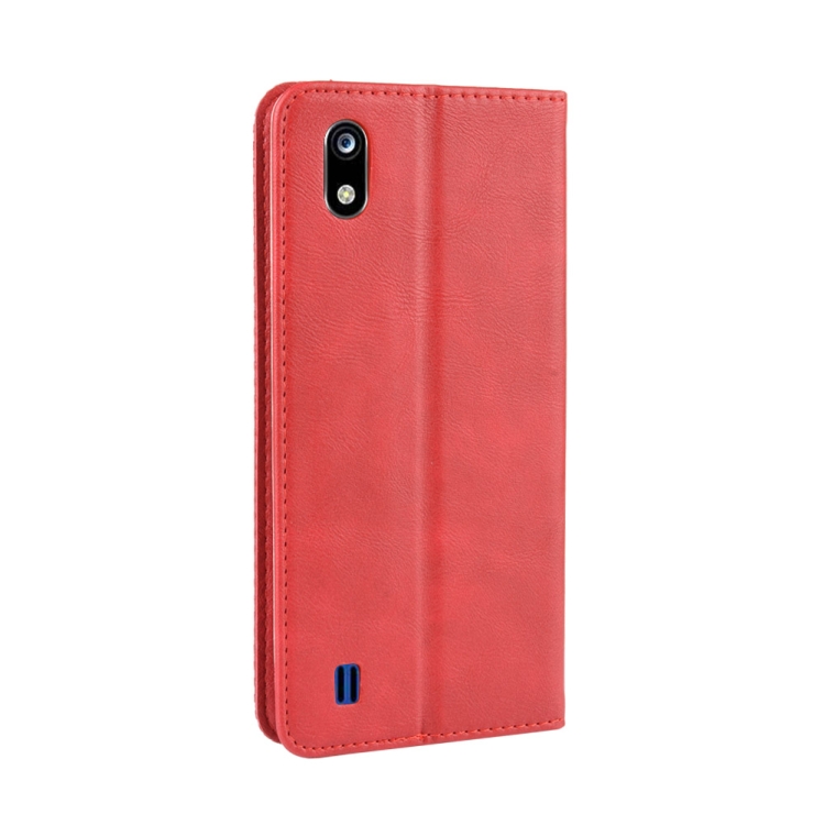 Estuche de Cuero ZTE Blade A7 (2019) Tapa Horizontal Textura Caballo Loco Rojo