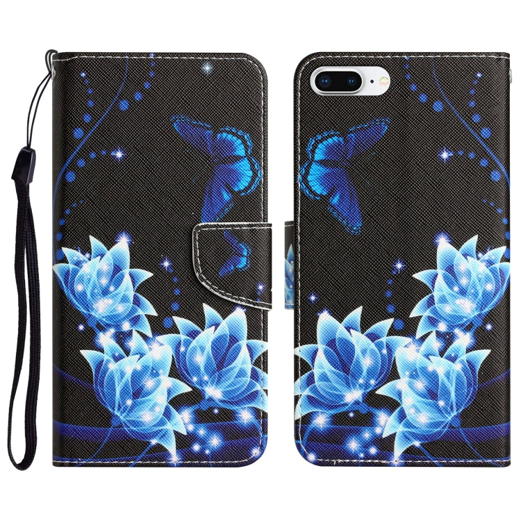 Colored drawing leather phone case for iPhone 7 Plus / 8 Plus (blue butterfly)