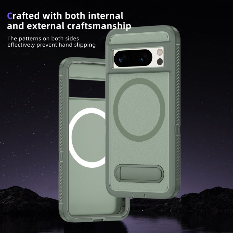 Estuche híbrido TPU y PC con soporte Magsafe para Google Pixel 8 Pro (Verde)