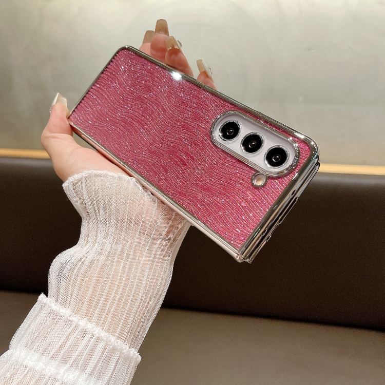 Estuche para Teléfono Samsung Galaxy Z Fold5 Cobertura Total Hebilla Lateral PC Papel Brillante (Rojo)