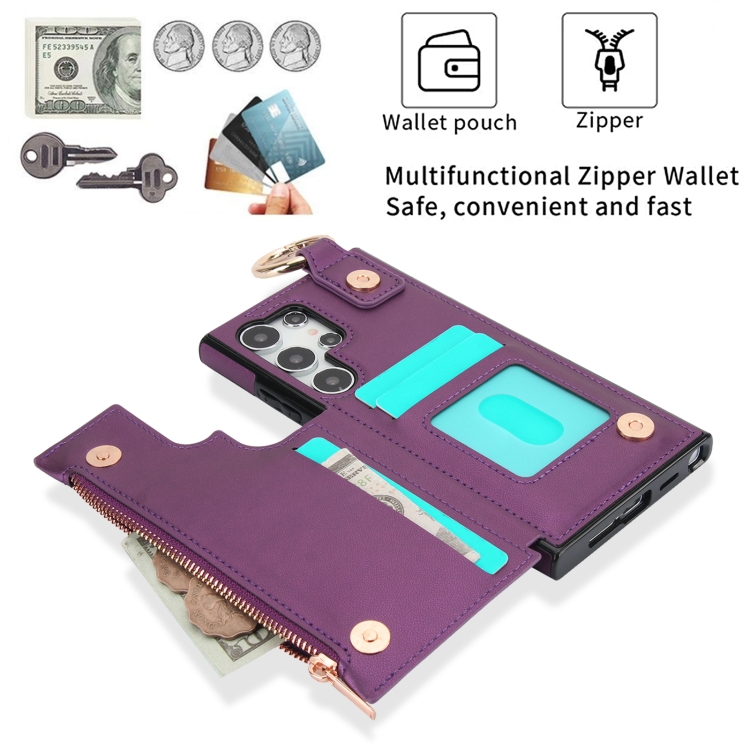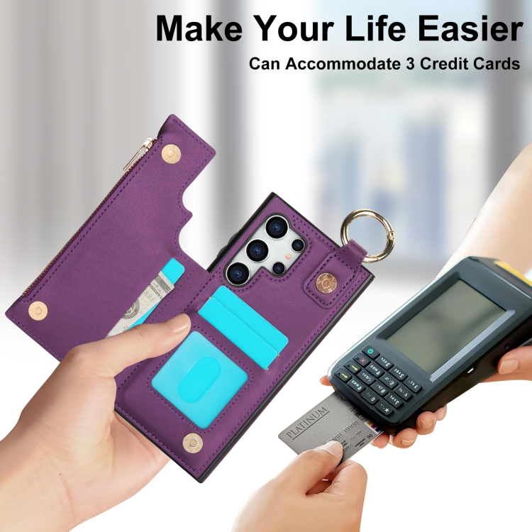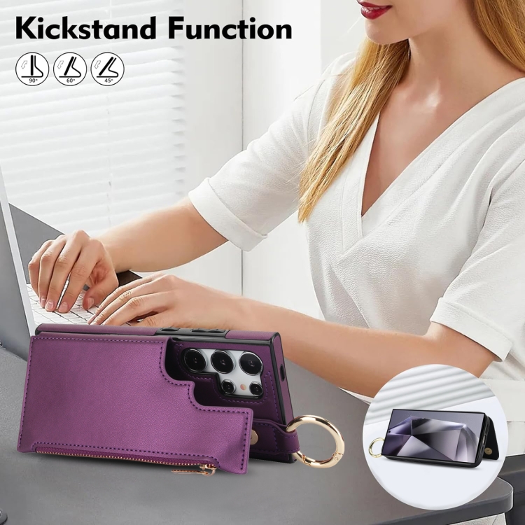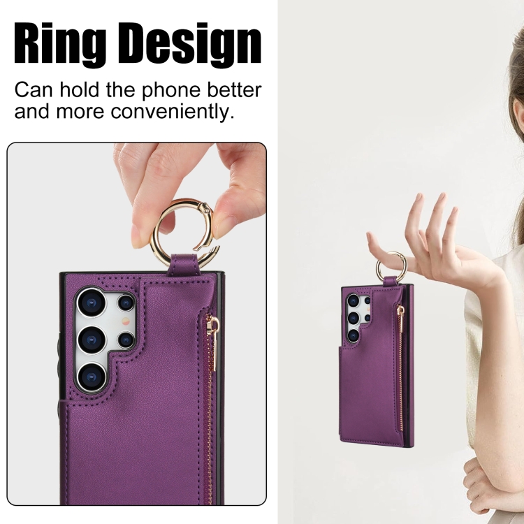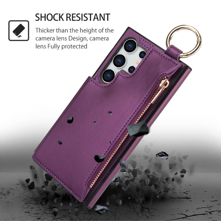Estuche para Teléfono Samsung Galaxy S24 Ultra 5G Rfld con Cremallera y Anillo de Doble Hebilla Antirrobo (Morado Oscuro)