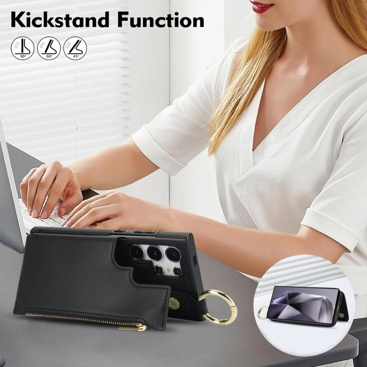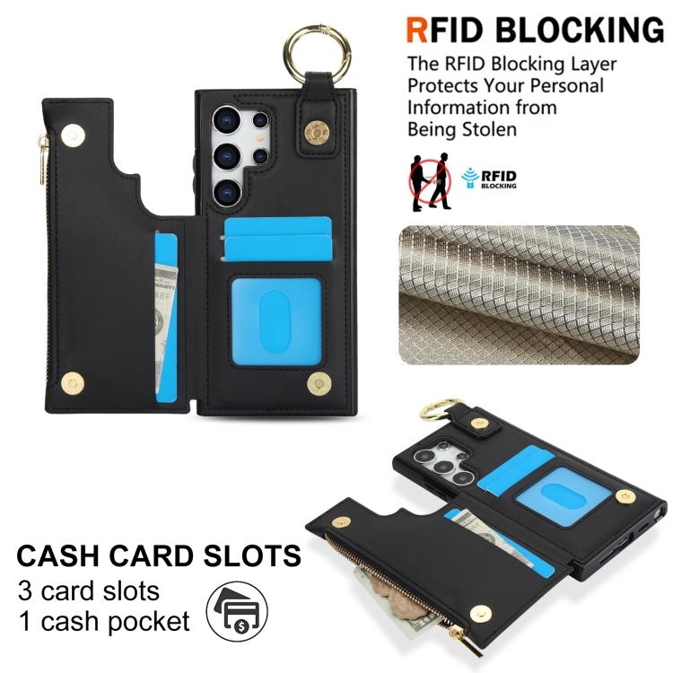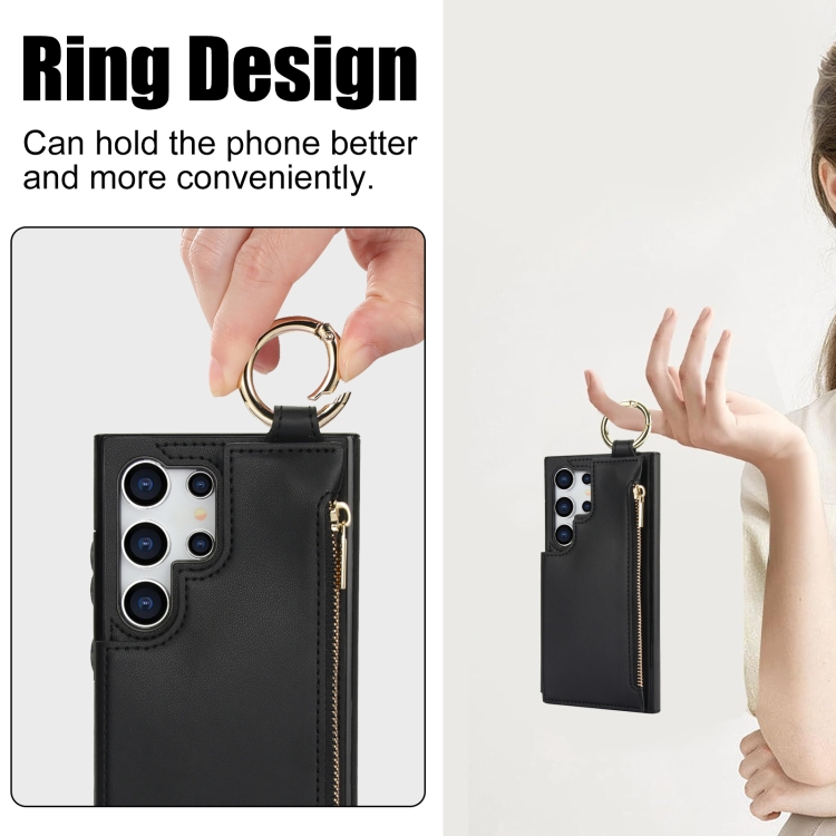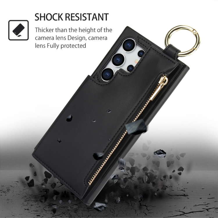 Estuche para Teléfono Samsung Galaxy S24 Ultra 5G Rfld con Cremallera y Anillo de Doble Hebilla Antirrobo (Negro)