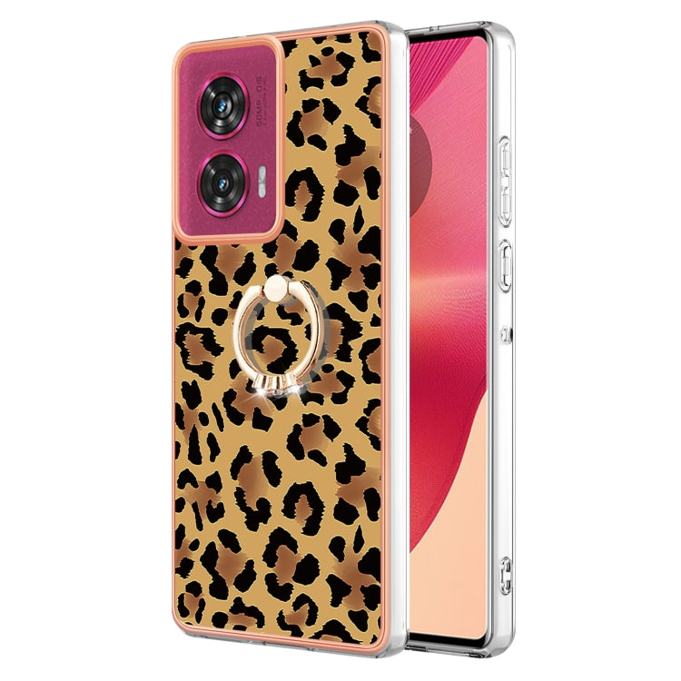 Estuche para Motorola Edge 50 Fusion con Galvanoplastia Doble Cara IMD y Soporte Anillo (Leopardo)
