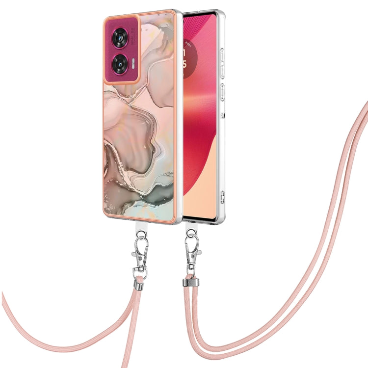 Estuche para Teléfono Motorola Edge 50 Fusion con IMD Doble Cara Galvanoplastia Mármol y Cordón (Oro Rosa)