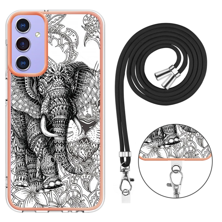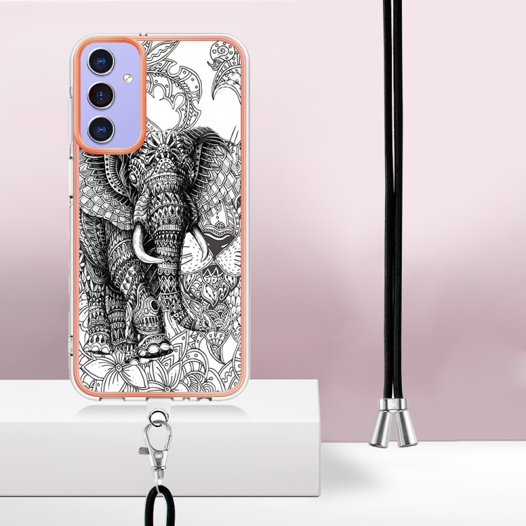 Estuche para Teléfono Samsung Galaxy A16 5G con Imd Doble Cara Galvanizada y Cordón (Elefante Tótem)