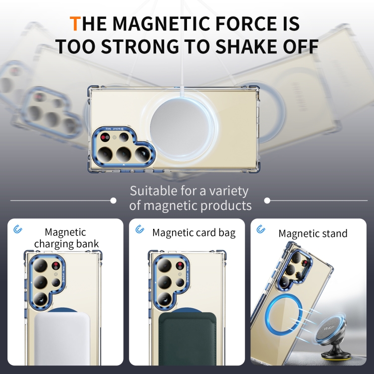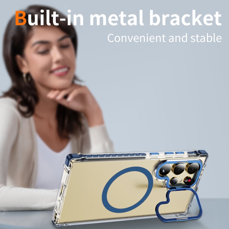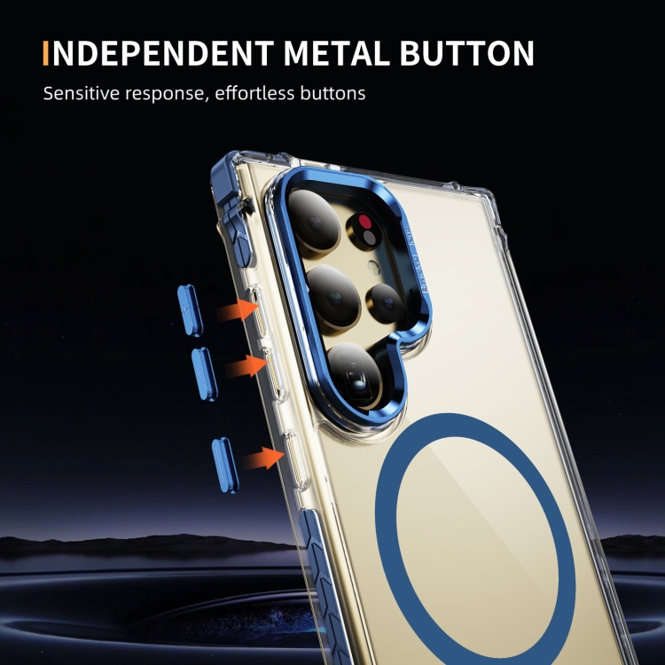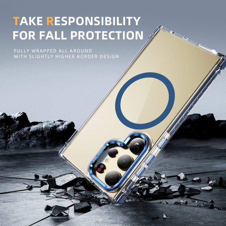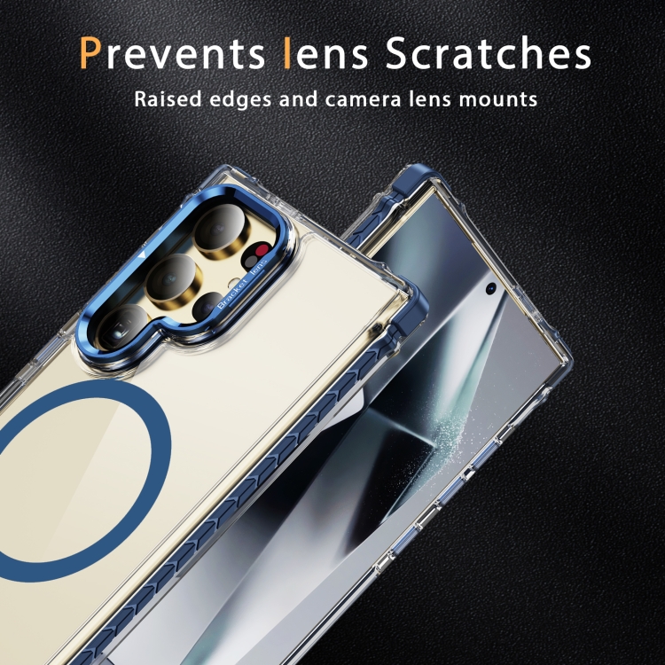 Estuche para Teléfono Samsung Galaxy S24 Ultra 5G con Soporte para Lente Magsafe Transparente (Azul)