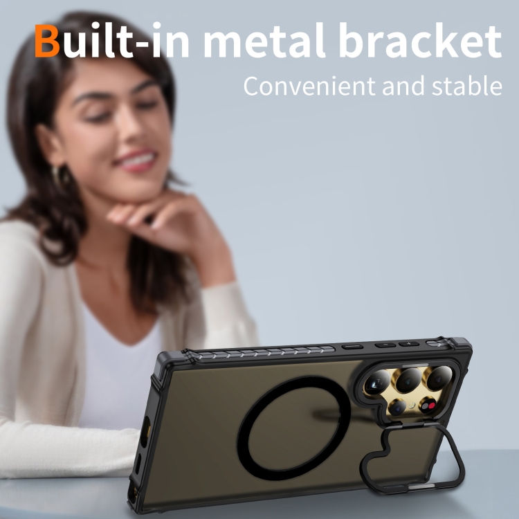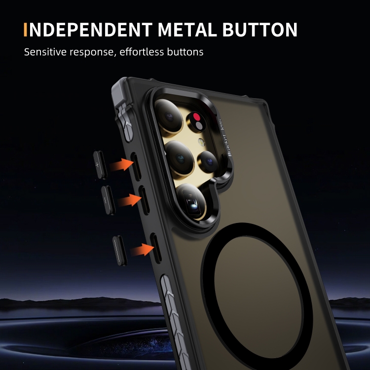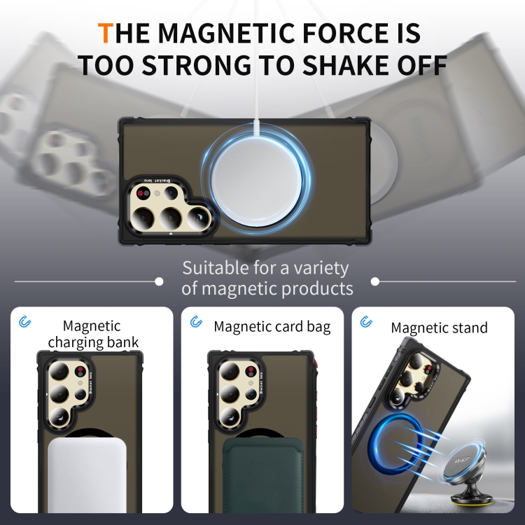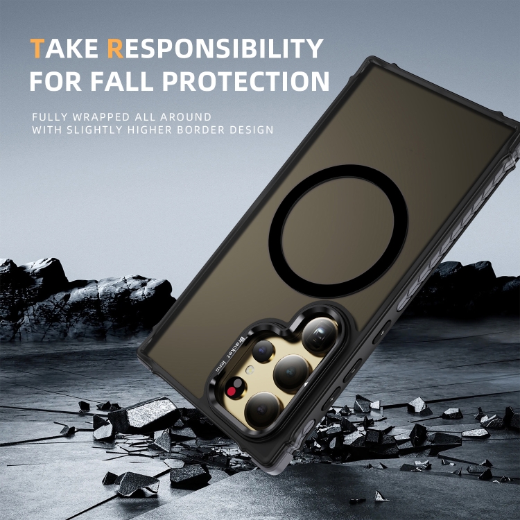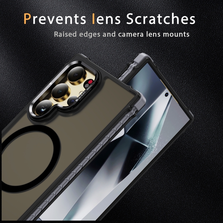 Estuche para teléfono Samsung Galaxy S24 Ultra 5G con soporte para lentes Magsafe y tacto de piel (Negro)