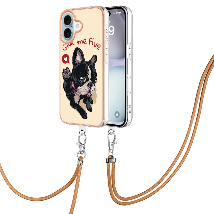 Estuche para Teléfono IMD Doble Cara con Galvanoplastia y Cordón para iPhone 16 (Perro de la Suerte)